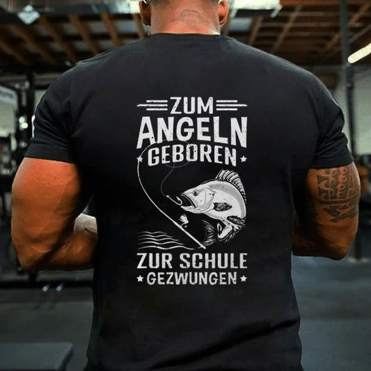 Zum Angeln Geboren Zur Schule Gezwungen Angler Angelfan T-Shirt