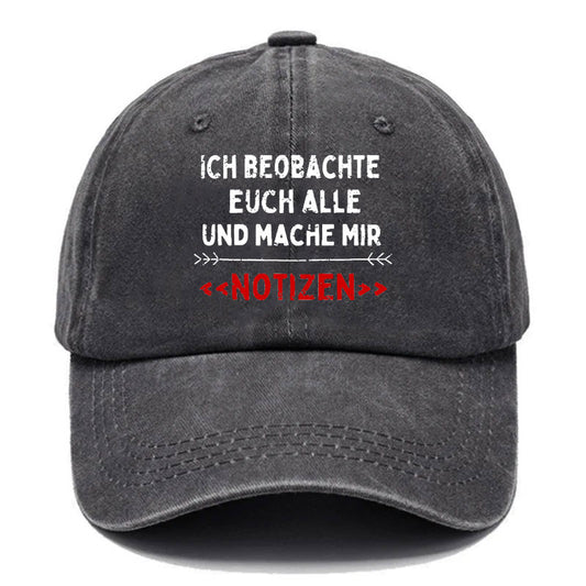 Ich Beobachte Euch Alle Und Mache Mir Notizen Baseball Cap