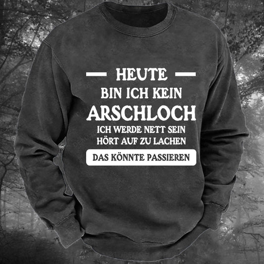 Heute werde ich kein Arschloch sein, ich werde nett sein. Hört auf zu lachen, das könnte passieren Gewaschenes Sweatshirt