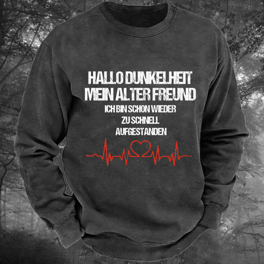 Hallo Dunkelheit, mein alter Freund, ich bin schon wieder zu schnell aufgestanden Gewaschenes Sweatshirt