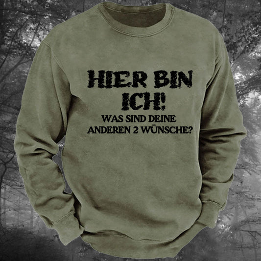 Hier bin ich! Was sind deine anderen 2 Wünsche Gewaschenes Sweatshirt