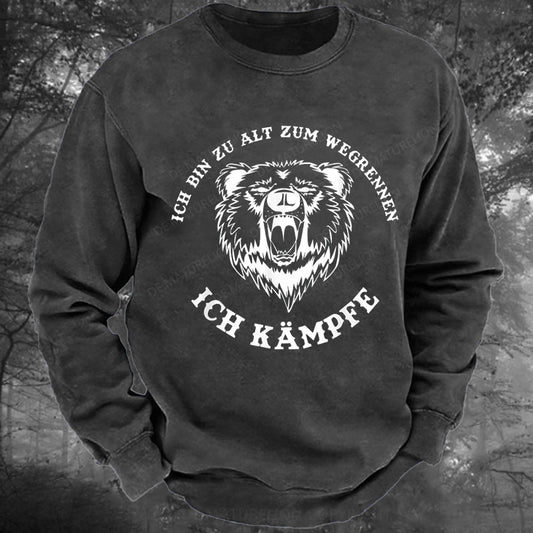 Ich bin zu alt zum wegrennen Ich kämpfe! Böser Alter Mann Gewaschenes Sweatshirt
