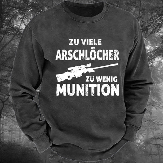 Zu viele Arschlöcher zu Wenig Munition Gewaschenes Sweatshirt