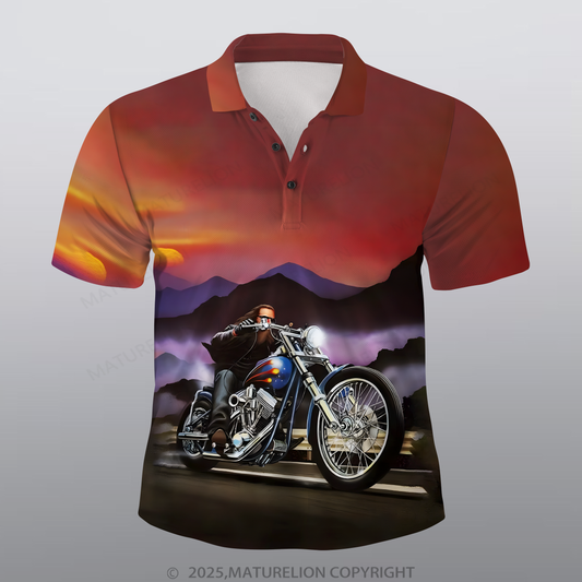 Maturelion Motorrad Männer Voll-Print Polo Shirt