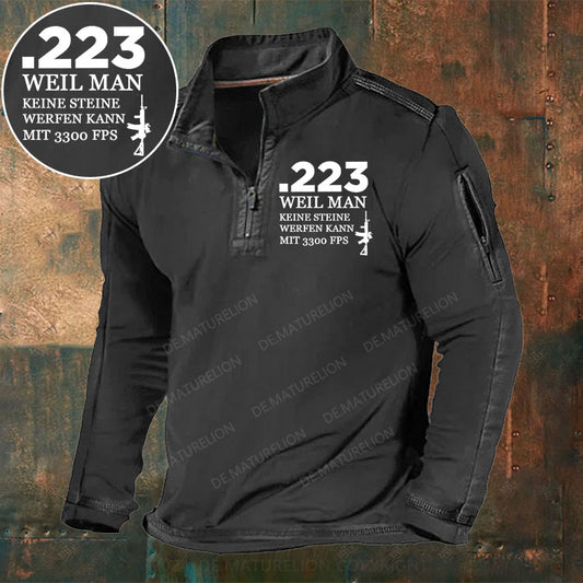 .223 Weil Man Keine Steine Werfen Kann Mit 3300 FPS Stehkragen Reißverschluss Polo Shirt