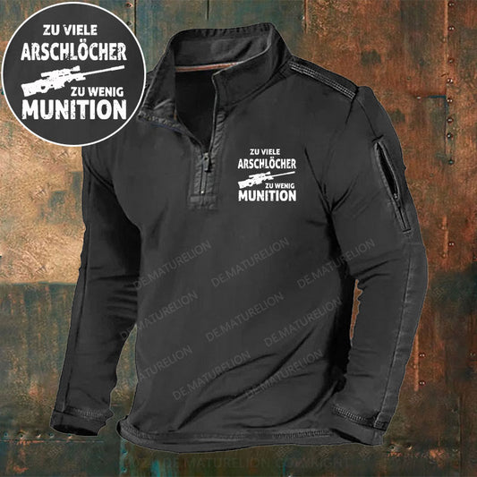 Zu viele Arschlöcher zu wenig Munition Stehkragen Reißverschluss Polo Shirt