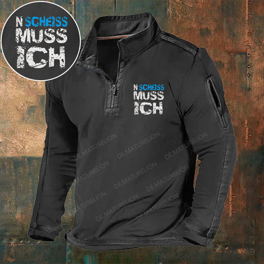 N Scheiss muss ich Stehkragen Reißverschluss Polo Shirt