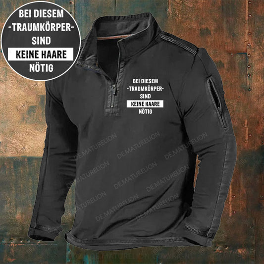 Bei diesem Traumkörper sind keine Haare nötig Stehkragen Reißverschluss Polo Shirt