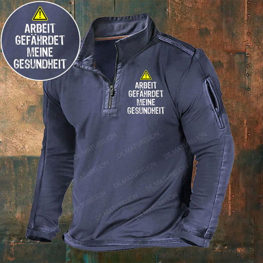 Arbeit gefährdet meine Gesundheit Männer Stehkragen Reißverschluss Polo Shirt