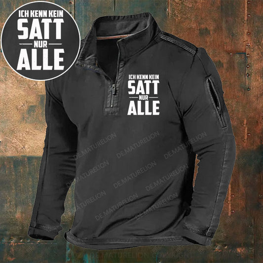 Ich kenn kein Satt nur Alle Stehkragen Reißverschluss Polo Shirt