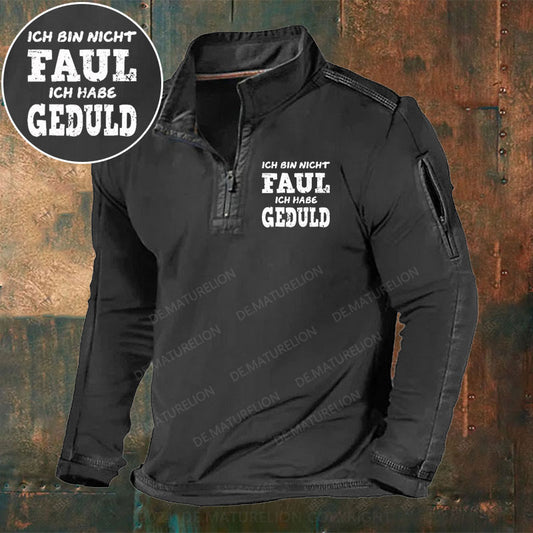 Ich Bin Nicht Faul Ich Habe Geduld Stehkragen Reißverschluss Polo Shirt