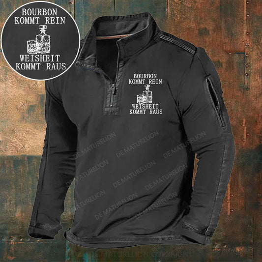 Bourbon kommt rein Weisheit kommt raus Stehkragen Reißverschluss Polo Shirt