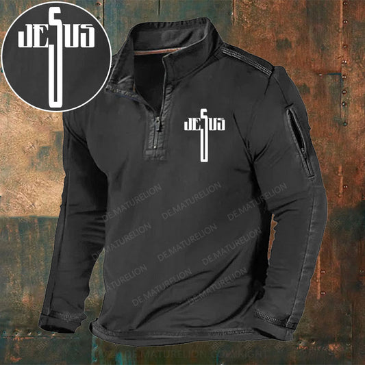 Jesus Christus Christlich Stehkragen Reißverschluss Polo Shirt