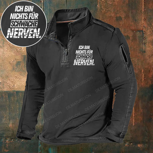 Ich bin nichts für schwache Nerven Stehkragen Reißverschluss Polo Shirt