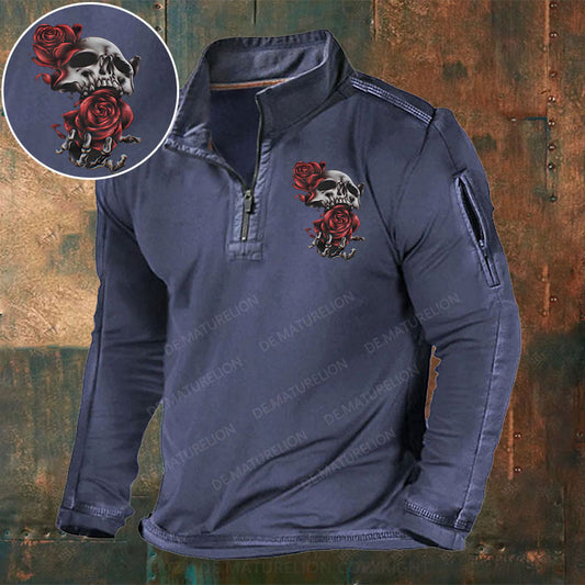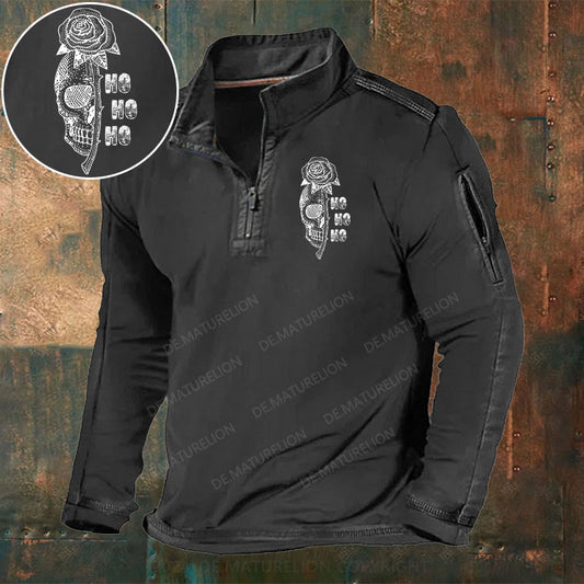 Skeleton Blumen Weihnachten Stehkragen Reißverschluss Polo Shirt
