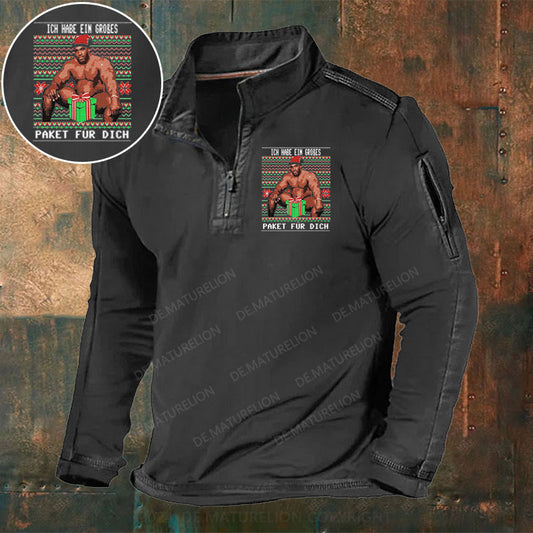 Ich Habe Ein Großes Paket Für Dich Frohe Weihnachten Stehkragen Reißverschluss Polo Shirt
