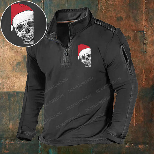 Weihnachten Schädel Stehkragen Reißverschluss Polo Shirt