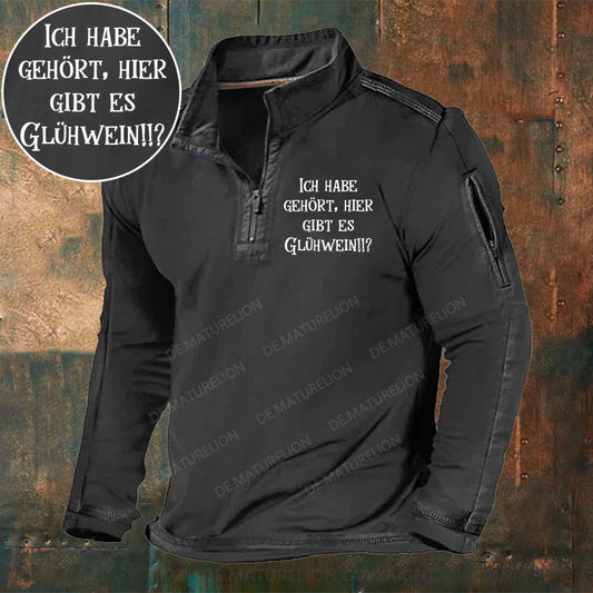 Glühwein trinken Weihnachtsmarkt Weihnachtsfeier Stehkragen Reißverschluss Polo Shirt