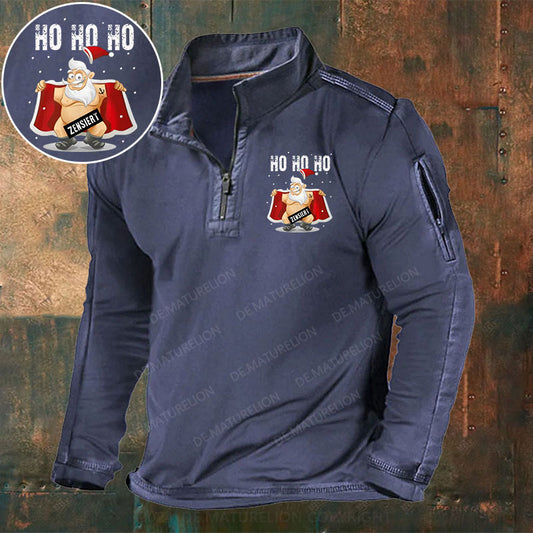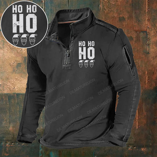 HO HO HO Heilige Nacht Stehkragen Reißverschluss Polo Shirt