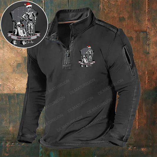 Frohe Feiertage Stehkragen Reißverschluss Polo Shirt