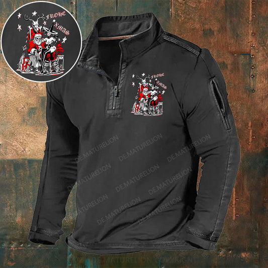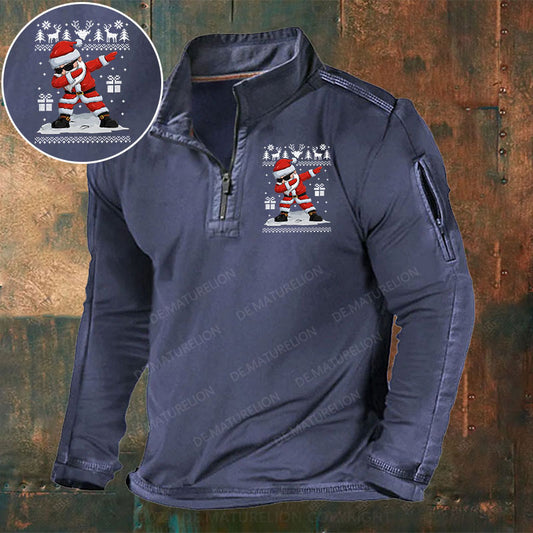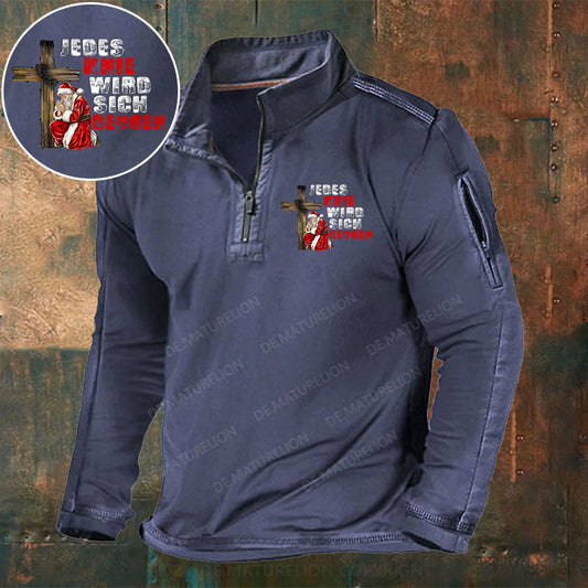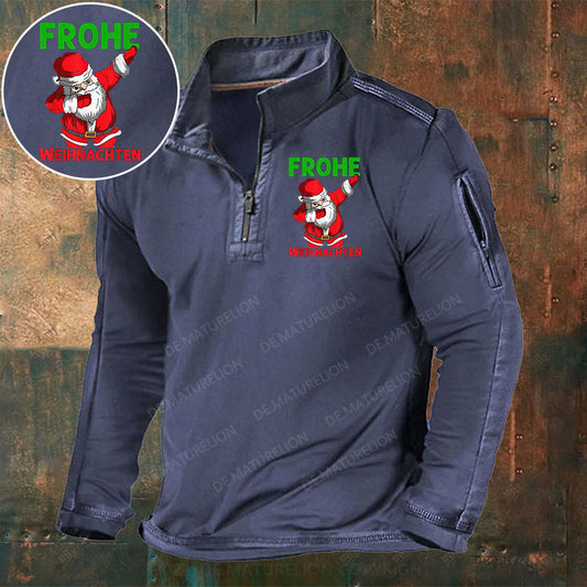 Weihnachtsmann Weihnachten Stehkragen Reißverschluss Polo Shirt