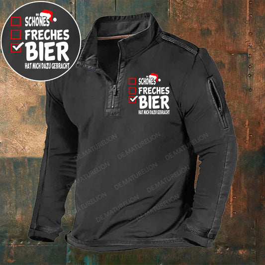 Schönes Freches Bier hat mich dazu gebracht Stehkragen Reißverschluss Polo Shirt