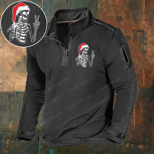 Skeleton Weihnachten Stehkragen Reißverschluss Polo Shirt