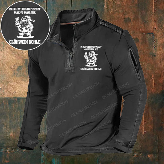 In der Weihnachtszeit macht man aus Glühwein Kohle Stehkragen Reißverschluss Polo Shirt