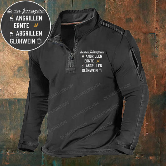 Die vier Jahreszeiten Angrillen Ernte Abgrillen Glühwein Stehkragen Reißverschluss Polo Shirt