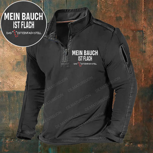 Mein Bauch ist flach. Das L ist einfach still Stehkragen Reißverschluss Polo Shirt