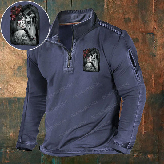 Skeleton Blumen Liebe Weihnachten Stehkragen Reißverschluss Polo Shirt