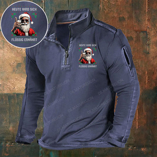 Heute wird sich flüssig ernährt Weihnachten Stehkragen Reißverschluss Polo Shirt