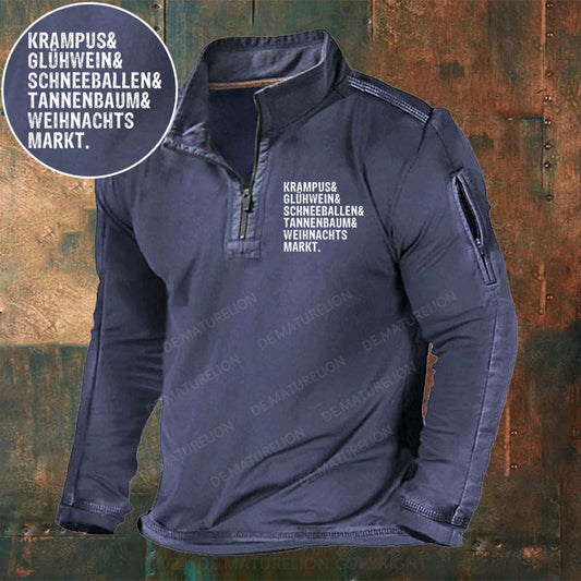 Krampus Glühwein Schneeballen Tannenbaum Weihnachtsmarkt Stehkragen Reißverschluss Polo Shirt